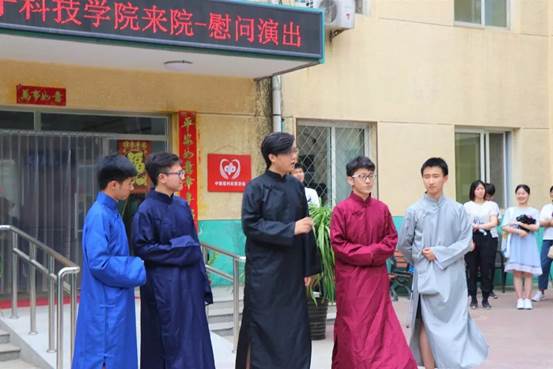 相聲,我國(guó)民間說(shuō)唱曲藝。我們電通學(xué)子為了本次敬老院活動(dòng)也穿上長(zhǎng)衫,運(yùn)用說(shuō)、學(xué)、逗、唱的形式,向老人們表演了《祝您健康》,相聲詼諧幽默,將飲食健康作為主題融入到相聲中,向老人們介紹各個(gè)食物的好處和壞處。