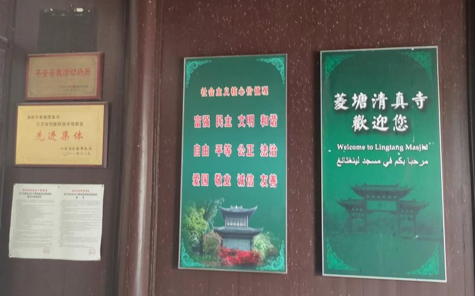 值得一提的是,不論是新清真寺還是古清真寺,寺內除了伊斯蘭教的相關建筑和文化宣傳,還有許許多多關于民族融合、宗教中國化、中華文化等內容的宣傳欄。引導和支持我國宗教以社會主義核心價值觀為引領,增進宗教界人士和信教群眾對偉大祖國、中華民族、中華文化、中國共產黨、中國特色社會主義的認同。在管理人員的辦公場所內我們還看到了一個“民族團結一家親,愛國愛教愛揚州”的標語,讓人印象深刻。